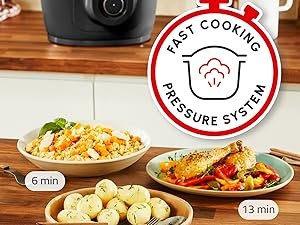 Se hai fretta, attiva la cottura a pressione (alta, media o express): in pochi minuti porti in tavola pietanze complete e piene di gusto.