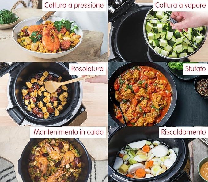 Avevo sempre paura della pentola a pressione, ma con Cookeo è tutto automatico e sicuro. Fa tutto da solo, cucina alla perfezione e mantiene il cibo caldo finché non lo servi. Davvero comodissimo!